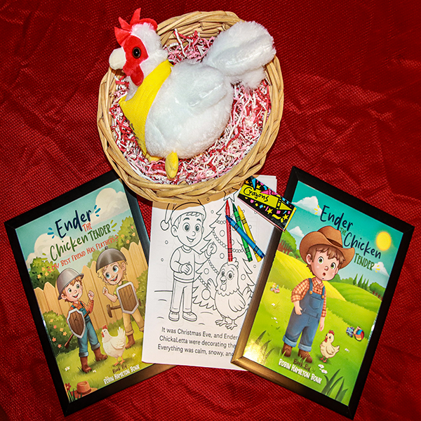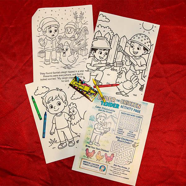 Both Books, Stuffy, Christmas Color Book & Crayons.